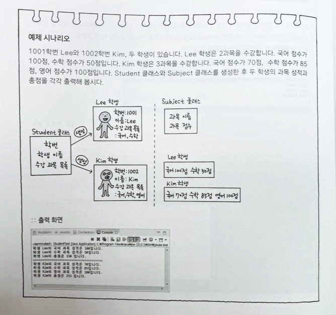 studentLee의 addSubject()메서드를 호출하여 학생 Lee가 수강중인 과목들(국,수)을 studentLee의 subjectList에 추가.