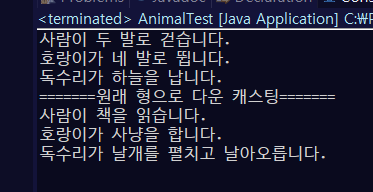 위 코드에서 참조 변수 hAnimal은 원래 Human형으로 생성되었는데, Animal형으로 형 변환되었다.