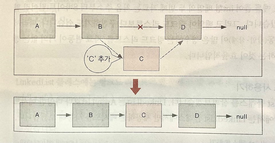 myList.add(1,"D"); //링크드 리스트의 첫 번째 위치에 D추가