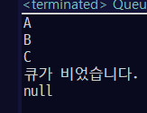 출력 결과를 보면 추가된 순서대로 요소가 반환되고 제거되는 모습을 확인할 수 있다.