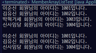 - addMember() 메서드에서는 매개변수로 전달된 회원을 ArrayList의 맨 뒤에 추가한다.