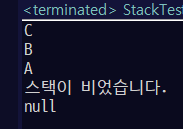 System.out.println(stack.pop()); //스택이 비었을 경우