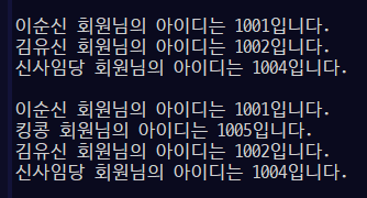 - showAllMember() 메서드에서는 모든 회원을 출력한다.