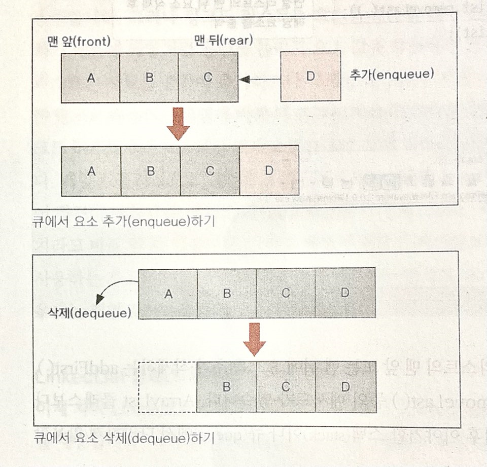 - 그리고 자료를 꺼내는 deQueue()메서드는 ArrayList의 맨 앞에있는 요소부터 제거하고 반환.