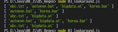 // 조건에 매칭된 후, 해당(?= 뒤로 이어진) 정규식에 있는 글자는 소모하지 않는다(취하지 않는다)