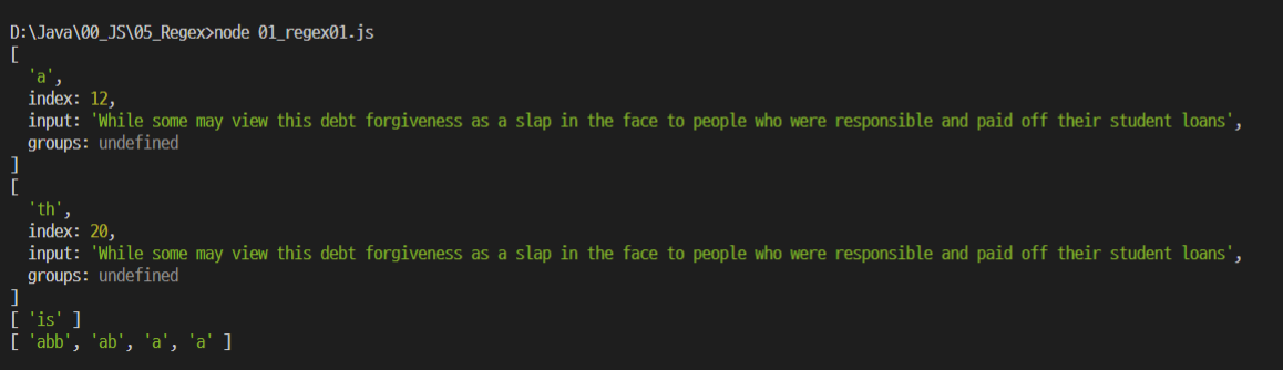 var c = a.match(/ab*/g); // a변수 안의 String 에서 'a'로 시작하고 'b'가 몇 개든 반복되는 글자를 검색.